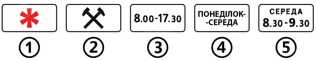 Встановлений з якою із зображених табличок дорожній знак діє в усі робочі дні?