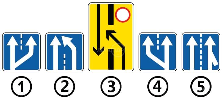 Який із зображених дорожніх знаків інформує водіїв про місце, де смуга для розгону прилягає до основної смуги руху на одному рівні з правого боку?
