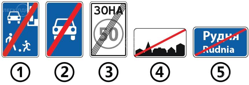 Який із зображених дорожніх знаків застосовується в населених пунктах, для виділення межі закінчення забудови населеного пункту, розташованої безпосередньо поблизу проїзної частини (за умови подальшої відсутності такої забудови)?