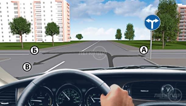 У якому з напрямків дозволено рух легкового автомобіля в зображеній ситуації?
