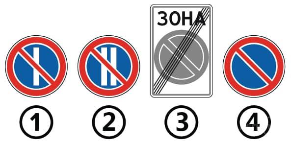 Який із зображених дорожніх знаків позначає кінець зони обмеженої стоянки, початок якої позначено відповідним дорожнім знаком?