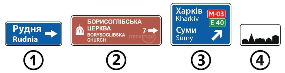 Який із зображених дорожніх знаків інформує про напрямок руху до зазначених на ньому пам`яток?