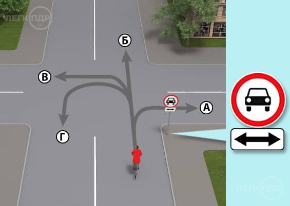 У якому напрямку дозволено рух велосипедистові на даному перехресті?