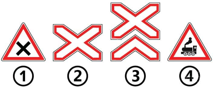 Який із зображених дорожніх знаків встановлюється безпосередньо перед залізничним переїздом без шлагбаума з двома і більше коліями?