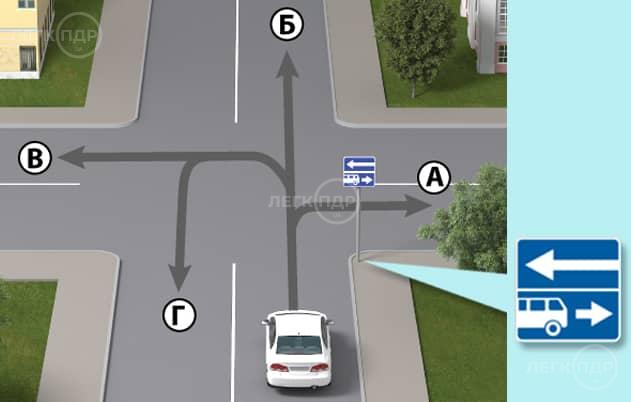 У якому з напрямків дозволено рух водієві білого автомобіля в зображеній ситуації?
