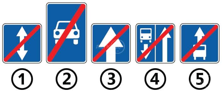 Який із зображених дорожніх знаків встановлюється в кінці смуги, призначеної тільки для транспортних засобів, що рухаються за встановленими маршрутами попутно із загальним потоком транспортних засобів?