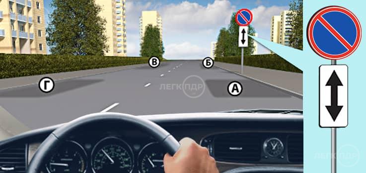 У якому з місць Ви можете виконати зупинку в зображеній ситуації?