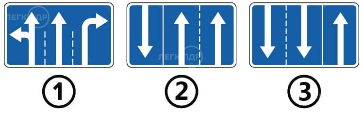 Який із зображених дорожніх знаків показує кількість смуг на перехресті й дозволені напрямки руху на кожній з них?