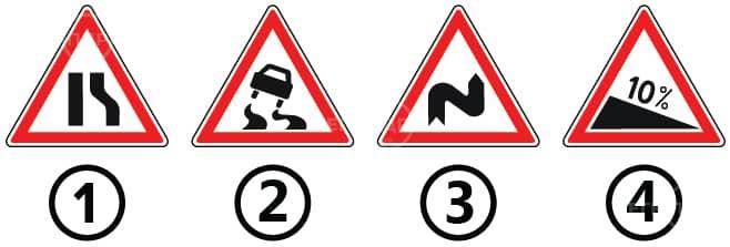 Який з наведених дорожніх знаків попереджає, що попереду ділянка дороги з підвищеною слизькістю проїзної частини?