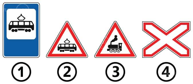 Який із зображених дорожніх знаків встановлюється перед перетином дороги з трамвайною колією на перехресті з обмеженою оглядовістю?