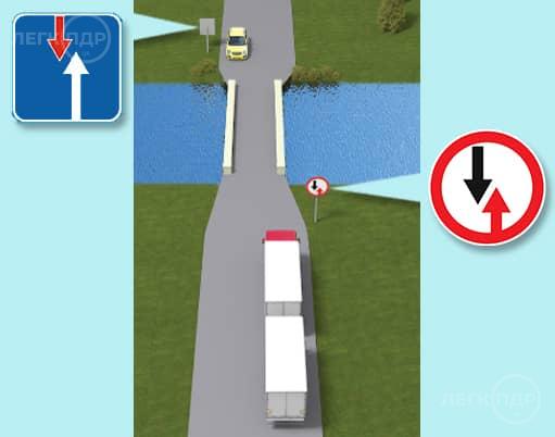 Хто з водіїв має перевагу під час зустрічного роз'їзду в даній ситуації?