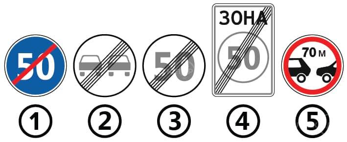 Який із зображених дорожніх знаків позначає кінець зони дії знака «Зона обмеження максимальної швидкості»?