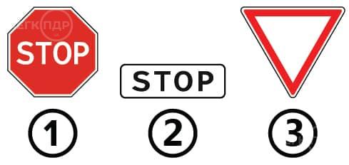 Вимога якого із зображених знаків зобов'язує водія транспортного засобу обов'язково зупинитися на нерегульованому перехресті або залізничному переїзді?