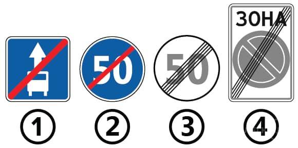 Який із зображених дорожніх знаків позначає кінець дії обмеження максимальної швидкості руху, встановленого відповідним дорожнім знаком?