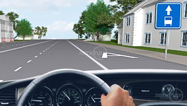 Які з перелічених транспортних засобів мають право рухатися по смузі, позначеній розміткою «А», на яку поширюється дія дорожнього знака, розміщеного праворуч від дороги?