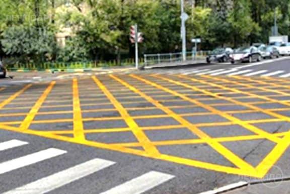 Чи дозволено виїжджати на цю горизонтальну розмітку на перехрестях під час заторів?
