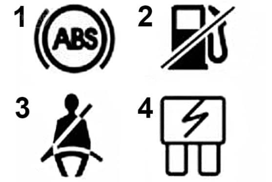 Який з наведених індикаторів стає активним при запуску двигуна автомобіля та горить до тих пір, поки ремінь безпеки не буде пристебнутий?