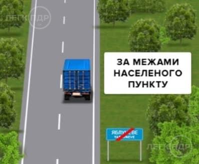 Яка максимальна швидкість встановлена для всіх вантажних автомобілів на цій дорозі за межами населених пунктів?