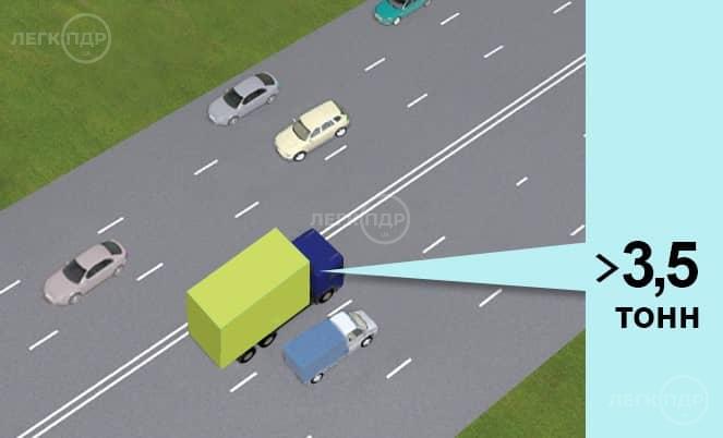 Вантажному автомобілю з дозволеною максимальною масою понад 3,5 т виїжджати на третю смугу?