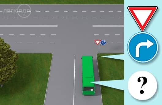 Чи дозволено водієві автобуса, що рухається за встановленим маршрутом, повернути ліворуч у зображеній ситуації?