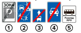Який із зображених дорожніх знаків встановлюється в кінці посадкового майданчика зупинки автобуса?