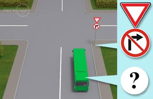 Чи дозволено автобусу, який рухається за встановленим маршрутом, повернути праворуч на зображеному перехресті?