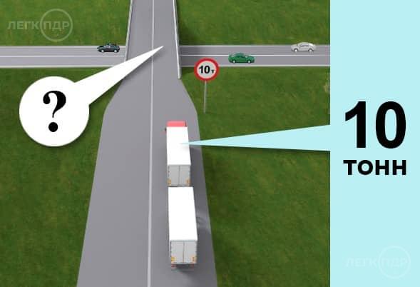 Чи дозволено рух транспортного состава в зображеній ситуації, якщо маса тягача – 10 т?