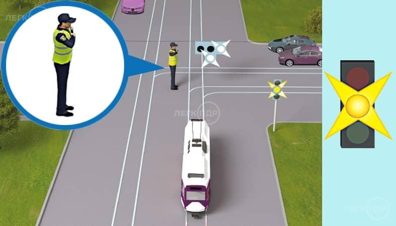 У якому напрямку дозволено рух трамвая в даній ситуації?