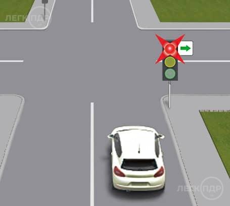 У якому напрямку водієві автомобіля дозволено рух у даній ситуації?