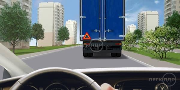 Про що свідчить (може попереджати) знак аварійної зупинки, встановлений ззаду на автомобілі, що рухаєтеся?