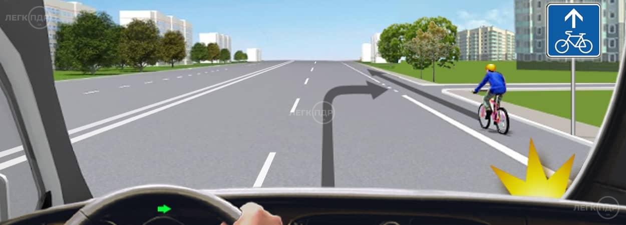Ви, як водій автомобіля, повертаючи праворуч в показаній ситуації повинні: