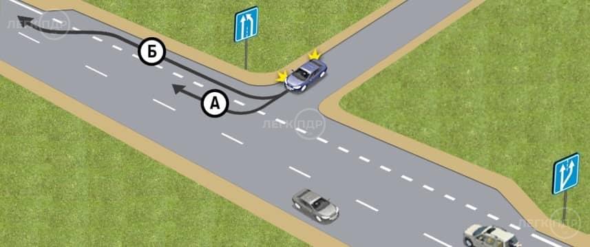 Яким шляхом водій правильно виконує поворот на дорогу зі смугою для розгону?