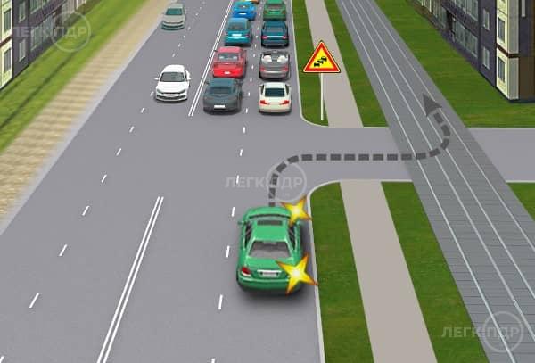 Чи дозволено водієві рух по трамвайній колії попутного напрямку в даній ситуації?