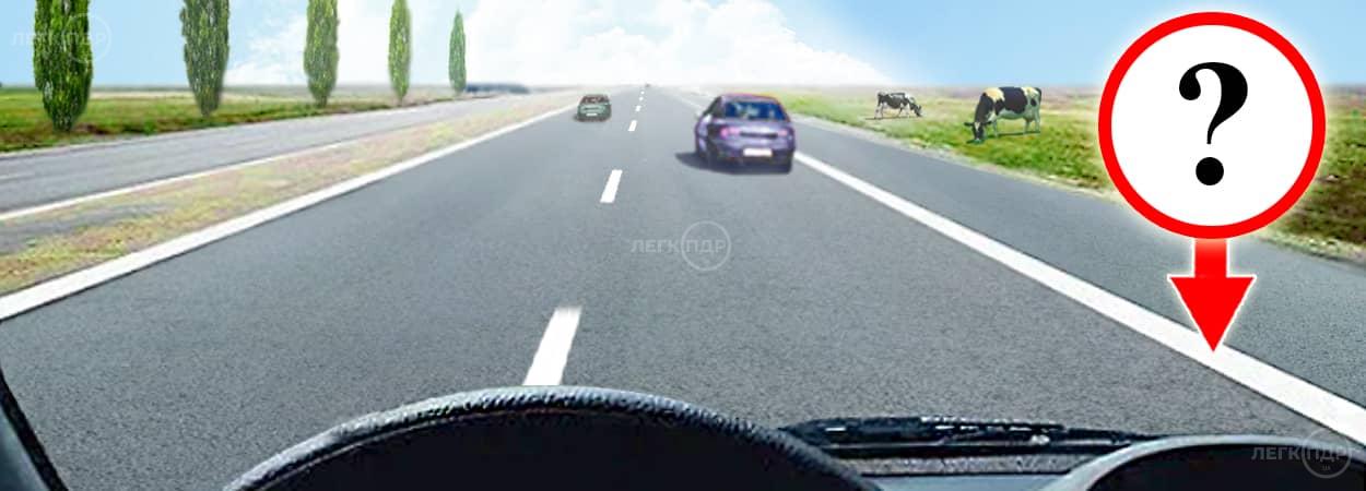 У наведеному випадку суцільна лінія дорожньої розмітки вважається межею проїзної частини та узбіччя?