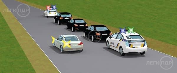 Чи дозволено водієві білого автомобіля виконати обгін у цій ситуації?