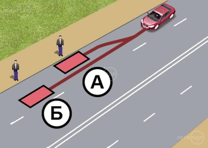 У якому місці повинен зупинитися водій червоного автомобіля?