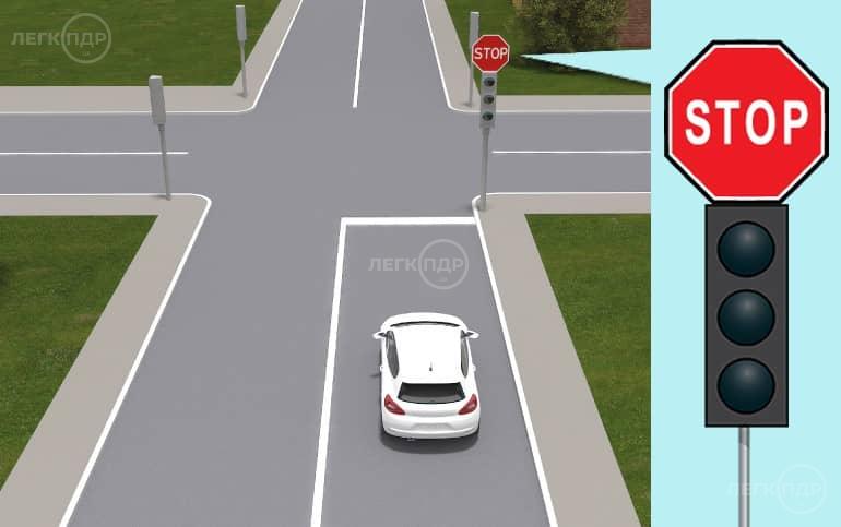 Як водій білого автомобіля, що наближається до перехрестя, повинен проїхати дане перехрестя?