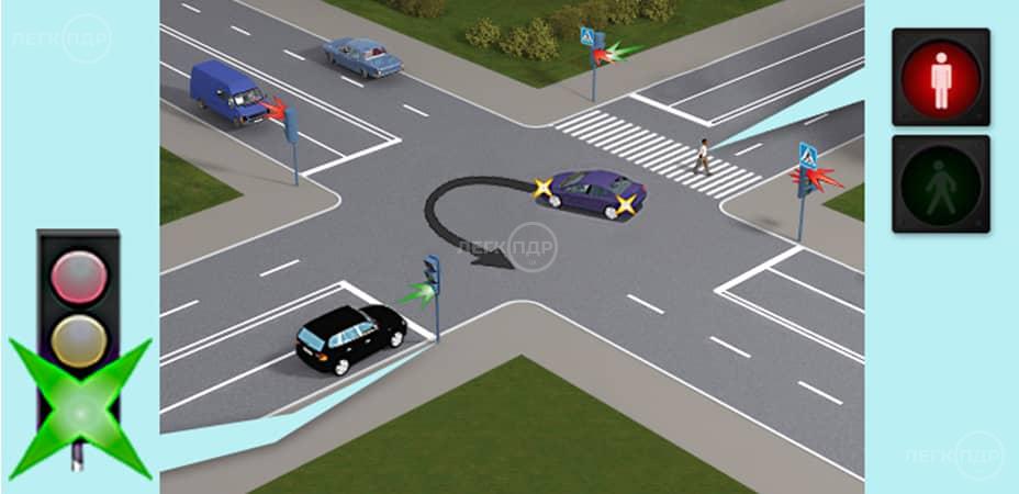 Як зобов`язаний вчинити водій чорного автомобіля, для якого ввімкнувся зелений сигнал світлофора?