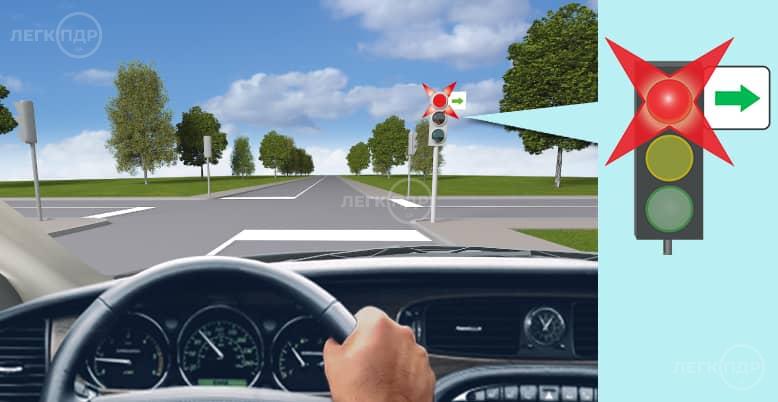 Чи дозволено Вам повернути праворуч у даній ситуації при ввімкненому червоному сигналі світлофора?