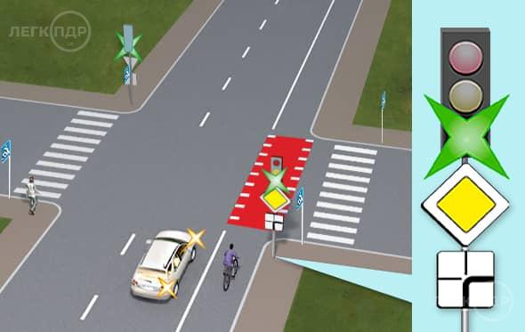 Чи повинен водій автомобіля дати дорогу велосипедисту в даній ситуації?
