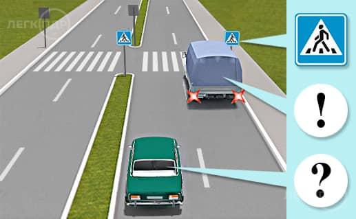Як повинен вчинити водій автомобіля, якщо автомобіль, що їде перед ним, почав зменшувати швидкість перед нерегульованим пішохідним переходом?
