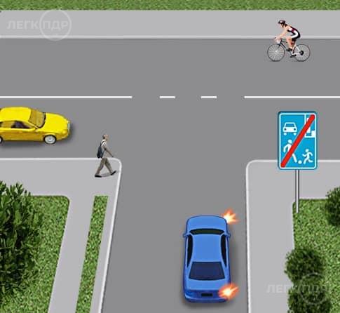 Виїжджаючи із житлової зони, водій синього автомобіля повинен дати дорогу: